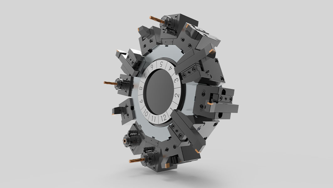 ? 刀塔采用伺服電機分度,齒盤精定位,液壓夾緊的設計結構。